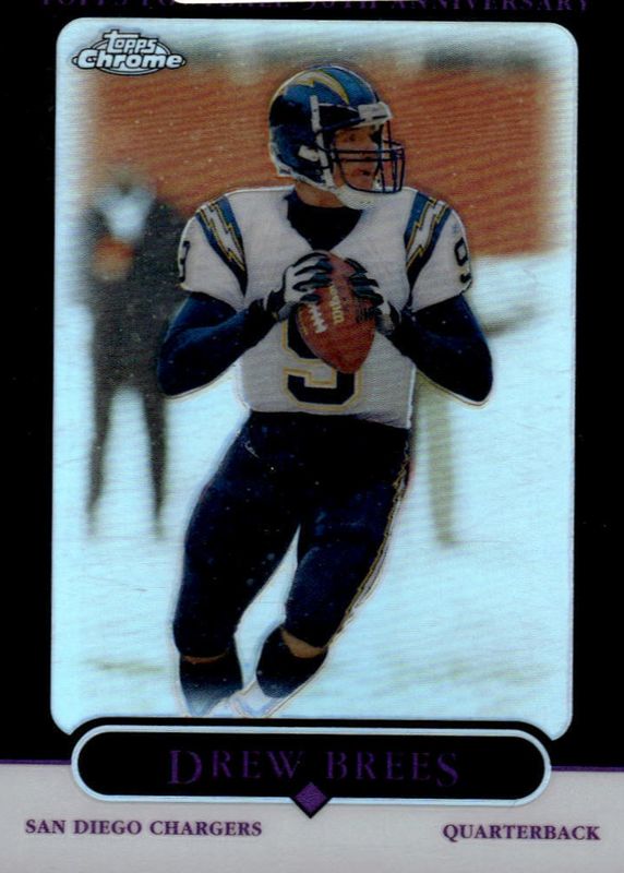 This card is 1 of 3 Drew Brees' card variations in the 2005 Topps Chrome set being tracked by Sports Card Investor, including Refractor, and Gold X-Fractor /399.