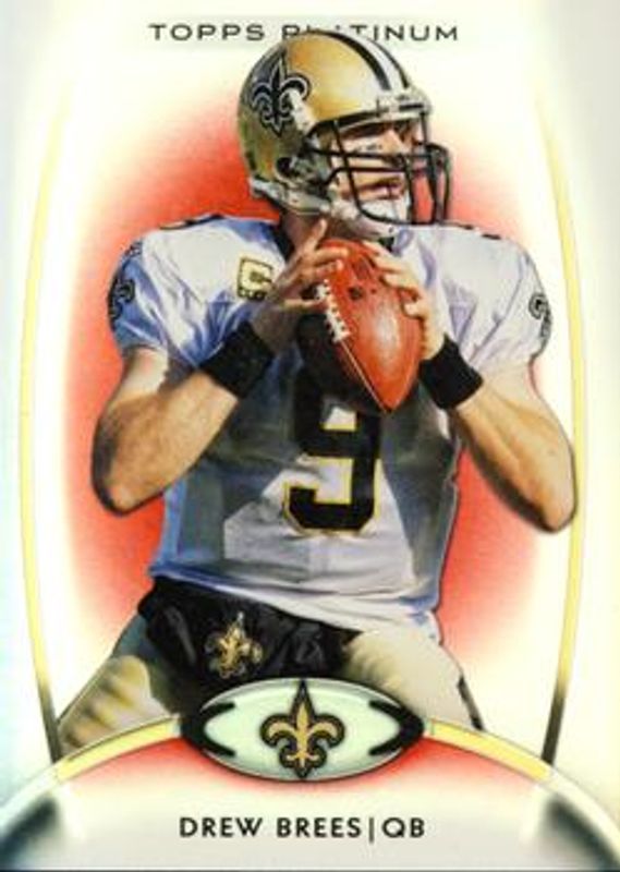 The Drew Brees 2012 Topps Platinum #100 Ruby card is 1 of 3 Drew Brees' card variations in the 2012 Topps Platinum set being tracked by Sports Card Investor, including Base, and Autographed Patch - Refractor /5.