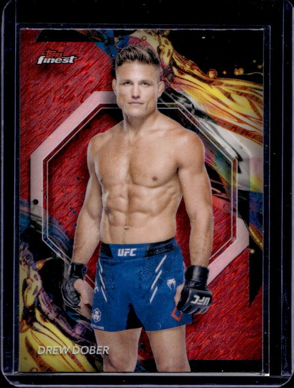 The Drew Dober 2024 Topps Finest UFC #124 Red Shimmer Refractor card is 1 of 29 Drew Dober's card variations in the 2024 Topps Finest UFC set being tracked by Sports Card Investor, including Base, Aqua Glitter Refractor, Black Refractor, Blue Checkerboard Refractor, and Blue Refractor.