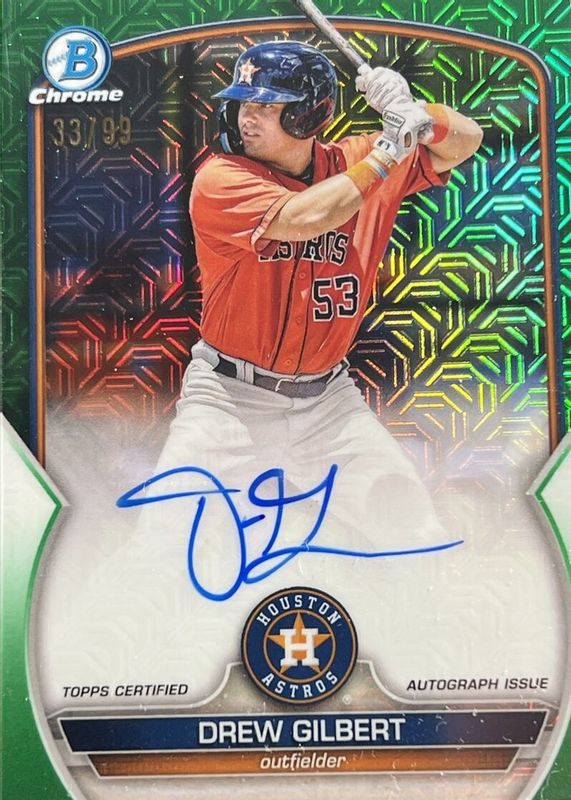 DREW GILBERT - 2023 BOWMAN CHROME MEGA #BMA-DGT GREEN MOJO REFRACTOR /99 AUTO RC