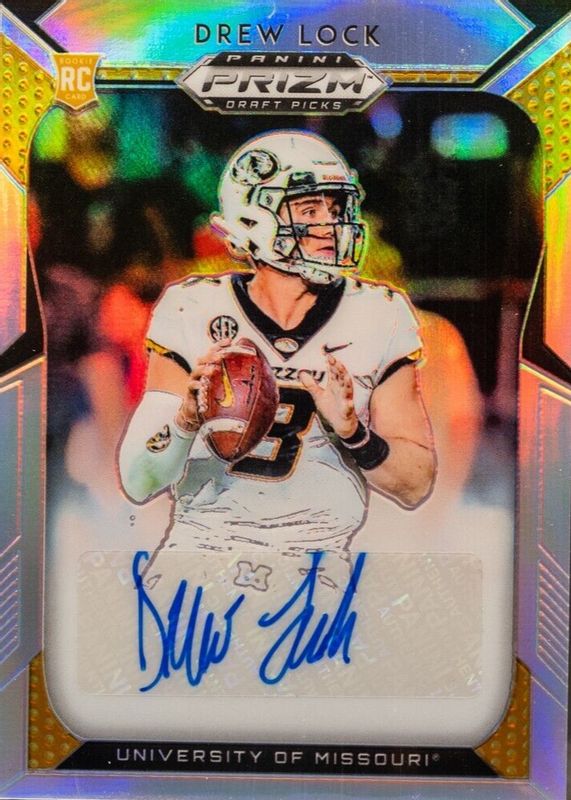 This card is 1 of 2 Drew Lock's card variations in the 2019 Prizm Draft Picks set being tracked by Sports Card Investor, including Silver.