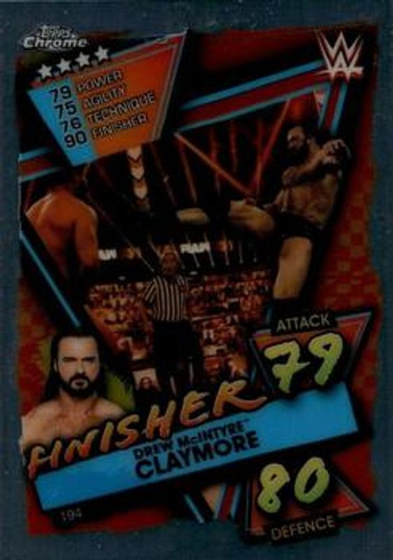 The Drew McIntyre 2021 Topps Chrome Slam Attax WWE #194 Base card is 1 of 40 Drew McIntyre's card variations in the 2021 Topps Chrome Slam Attax WWE set being tracked by Sports Card Investor, including #185 Base, #33 Base, #152 Base, #33 Refractor, and #152 Refractor.