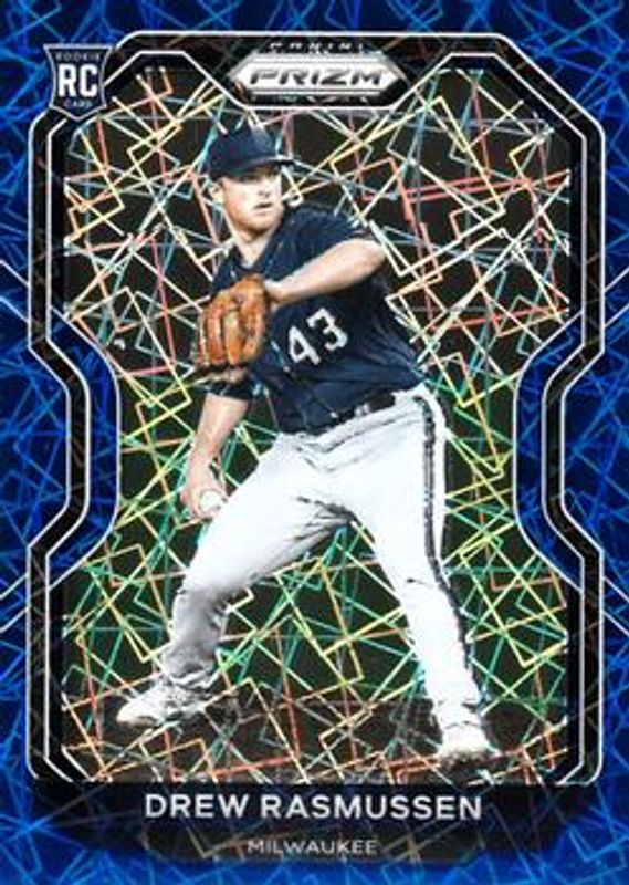 The Drew Rasmussen 2021 Prizm #197 Blue Velocity Rookie card is 1 of 69 Drew Rasmussen's card variations in the 2021 Prizm set being tracked by Sports Card Investor, including Base, Blue, Carolina Blue, Cosmic Haze, and Giraffe.