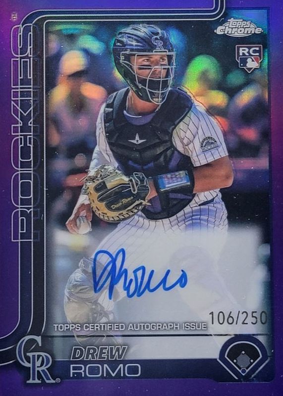2025 Topps Chrome Drew Romo Auto True Purple /250 RA-DRR Rockies Rookie