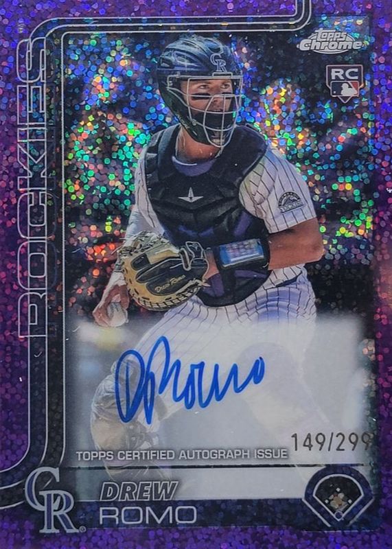 2025 Topps Chrome Rookie Purple Speckle Refractor 150/299 Drew Romo Auto RC