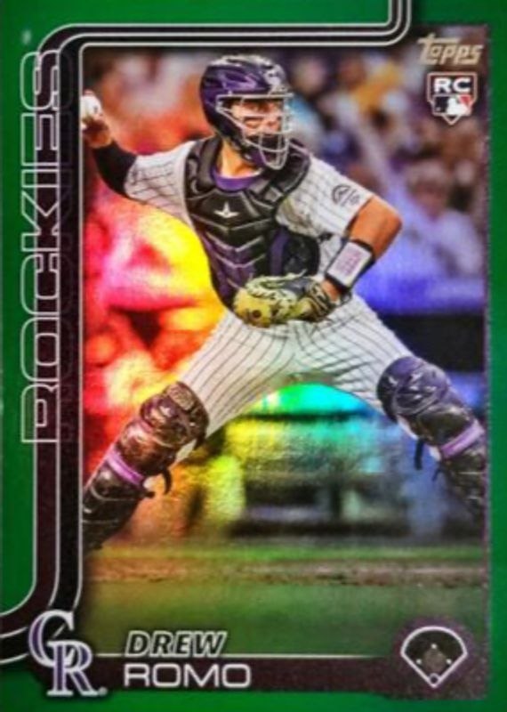 2025 Topps Series 1 Drew Romo #296 Green Foil RC /99 Colorado Rockies Rookie
