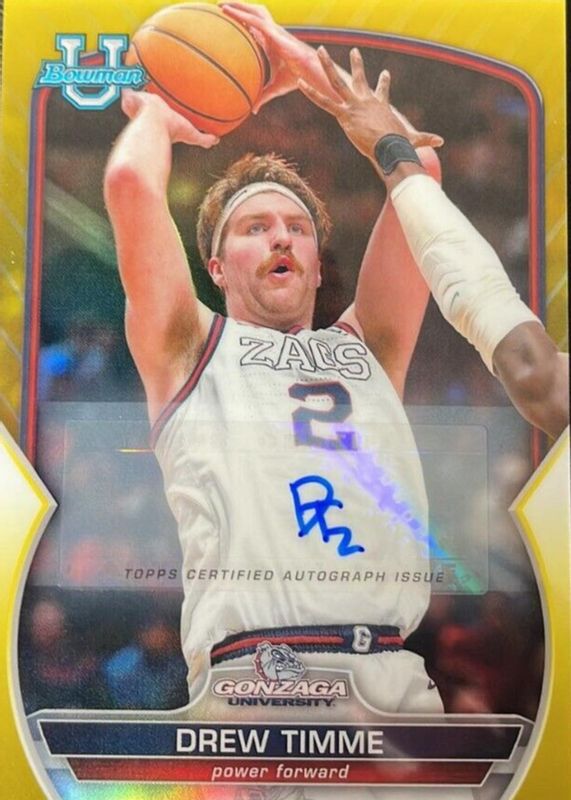 Drew Timme 2022 Bowman Chrome University #61 Prospect Autographs - Yellow Refractor /75 RAW Price Guide