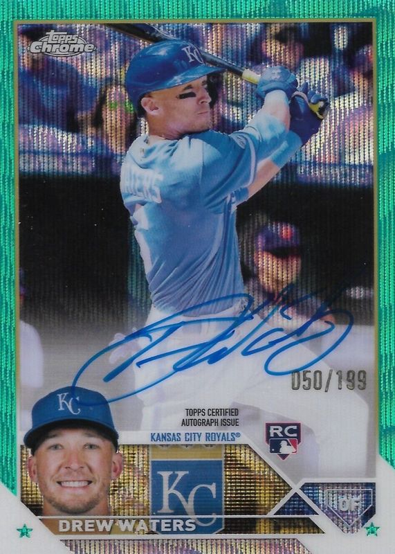 DREW WATERS 2023 Topps Chrome Aqua Wave Refractor Auto 37/199 RC Royals Rookie