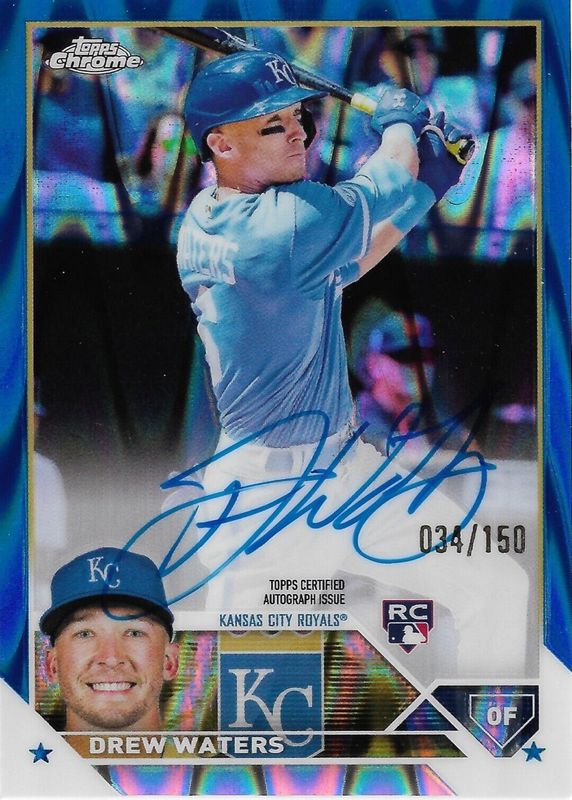 2023 Topps Chrome Drew Waters RC Auto Blue RayWave Refractor Royals #’ed 001/150