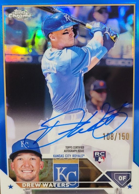 2023 Topps Chrome Drew Waters Rookie Blue Refractor Auto /150 (RA-DW) Royals RC