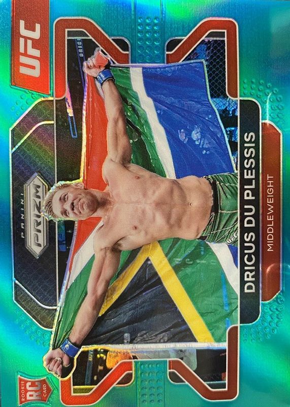 Dricus du Plessis' MMA cards are available in at least 10 sets. Dricus du Plessis' biggest 7-day price movers are 2022 Prizm UFC #92 Teal /49, 2022 Prizm UFC #92 Orange /99, and 2022 Prizm UFC #92 Black /1.