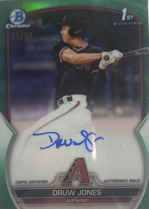2023 Bowman Chrome Druw Jones True Green Refractor 1st Auto /99 - Diamondbacks