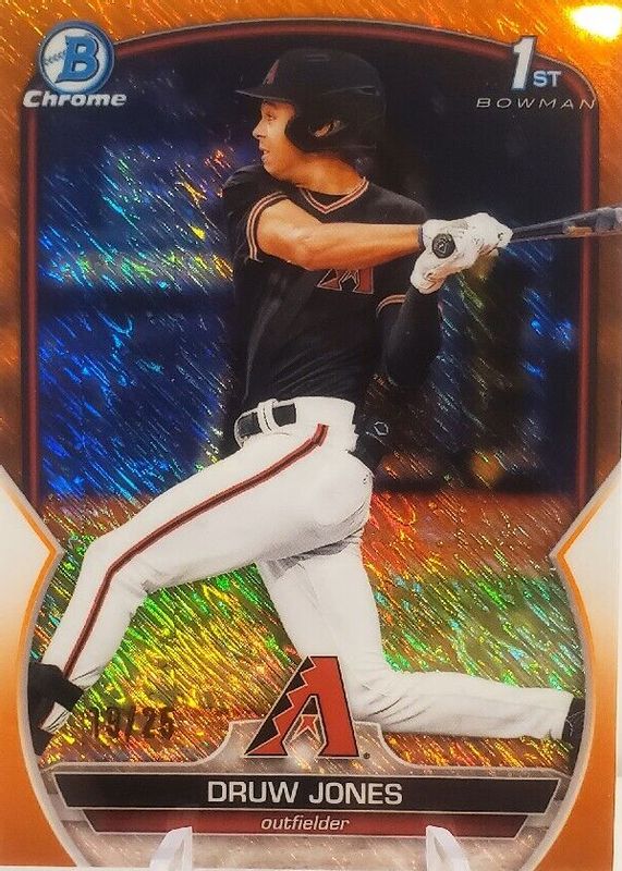 Auctions Ending Soon for Druw Jones 2023 Bowman #BCP-25 Chrome Prospects - Orange Shimmer Refractor /25 (1st) RAW