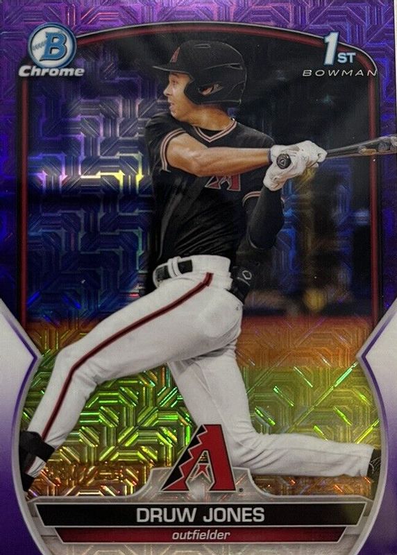 Druw Jones 2023 Bowman Mega Box #BCP-25 Chrome Prospects - Purple Mojo Refractor /250 (1st) RAW Price Guide