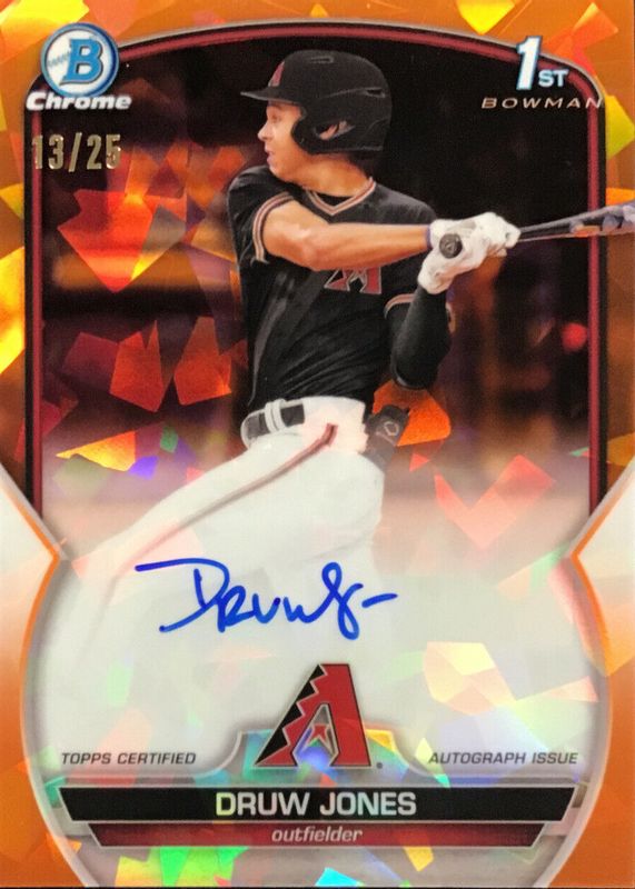 Auctions Ending Soon for Druw Jones 2023 Bowman Sapphire Edition #BSPA-DJ Chrome Prospect Auto - Orange /25 (1st) RAW