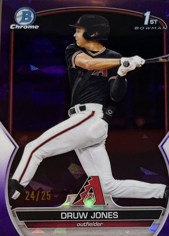 Auctions Ending Soon for Druw Jones 2023 Bowman Sapphire Edition #BCP-25 Chrome Prospects - Purple /25 (1st) RAW