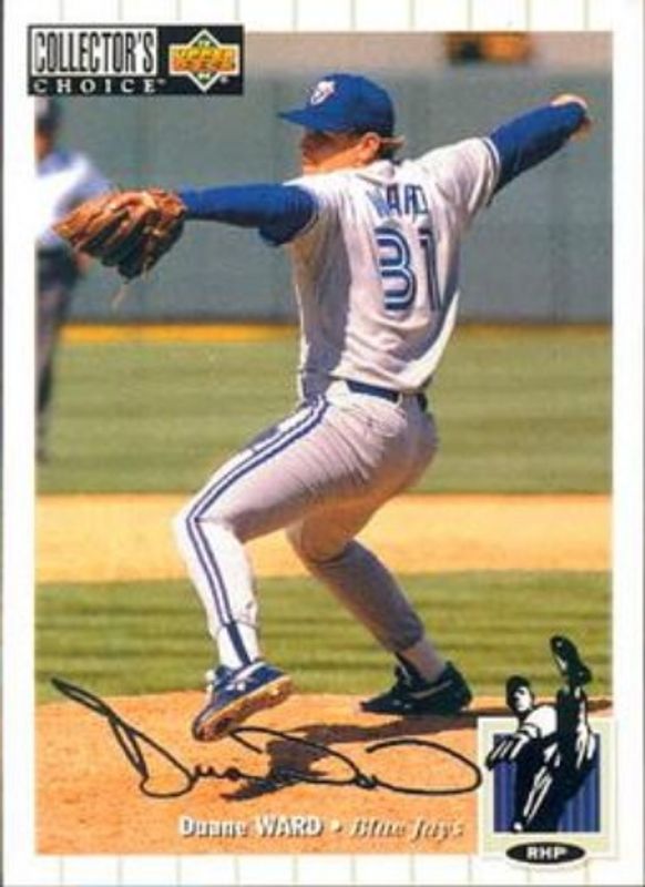 The Duane Ward 1994 Upper Deck Collector's Choice #287 Silver Signatures card is 1 of 3 Duane Ward's card variations in the 1994 Upper Deck Collector's Choice set being tracked by Sports Card Investor, including Base, and Gold Signatures.