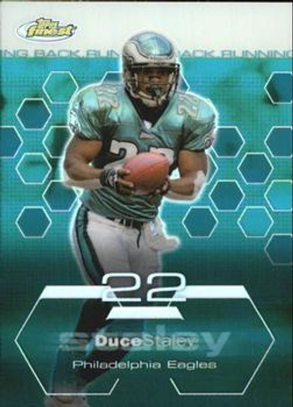 The Duce Staley 2003 Topps Finest #6 Refractors /199 card is 1 of 4 Duce Staley's card variations in the 2003 Topps Finest set being tracked by Sports Card Investor, including Base, Gold Refractor /50, and Gold Xfractor /50.