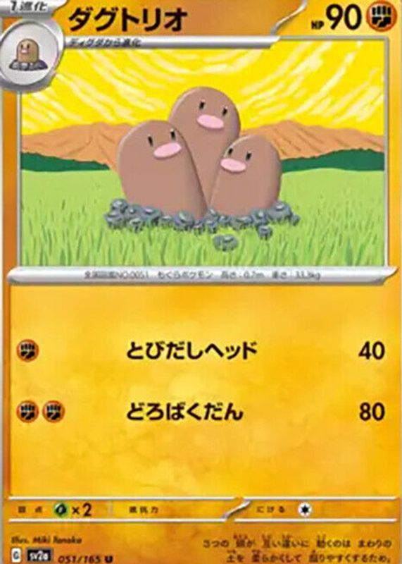 Dugtrio 051/165 Near Mint Uncommon 151 Japanese Pokemon SV2a 2023