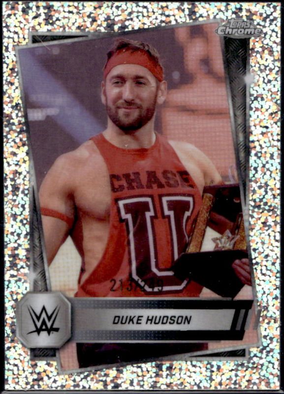 The Duke Hudson 2025 Topps Chrome WWE #112 Speckle Refractor /249 card is 1 of 50 Duke Hudson's card variations in the 2025 Topps Chrome WWE set being tracked by Sports Card Investor, including Base, Black & Gold Refractor, Geometric Refractor, Neon Green & Black Refractor, and Pink Shimmer Refractor.
