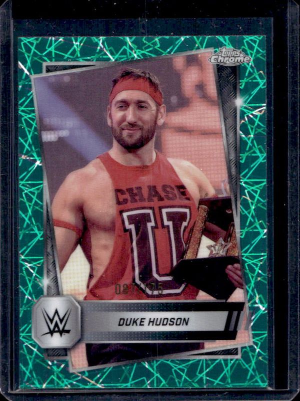 The Duke Hudson 2025 Topps Chrome WWE #112 Teal Lazer Refractor /175 card is 1 of 50 Duke Hudson's card variations in the 2025 Topps Chrome WWE set being tracked by Sports Card Investor, including Base, Black & Gold Refractor, Geometric Refractor, Neon Green & Black Refractor, and Pink Shimmer Refractor.