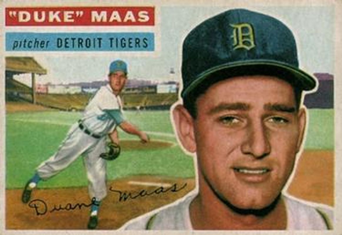 The Duke Maas 1956 Topps #57b Base Rookie card is 1 of 2 Duke Maas' card variations in the 1956 Topps set being tracked by Sports Card Investor, including Base.