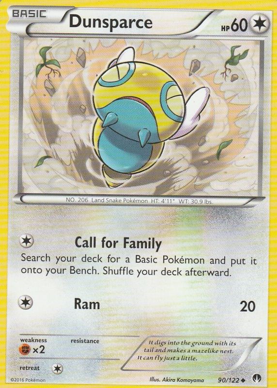 The Dunsparce 2016 XY: BREAKpoint #090/122 Base card in Raw TCG (Lightly Played) condition has not changed in price in the last 30 days and was last sold for $0.99 .