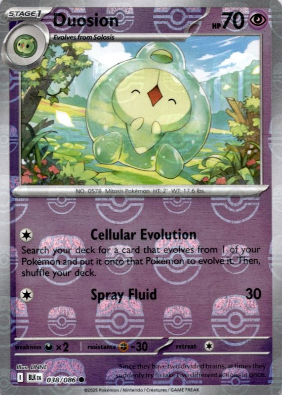 This card is 1 of 5 Duosion's card variations in the 2025 Scarlet & Violet: Black Bolt set being tracked by Sports Card Investor, including Base, Poke Ball Reverse Holo, Reverse Holo, and Illustration Rare.
