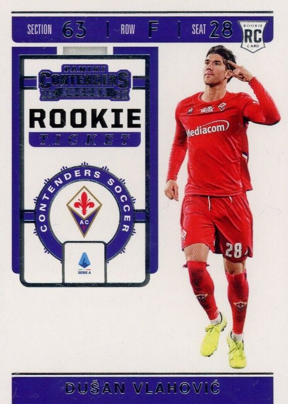 The Dusan Vlahovic 2019 Chronicles #RT-31 Contenders Rookie Ticket card in Raw condition has not changed in price in the last 30 days and was last sold for $2.25 .