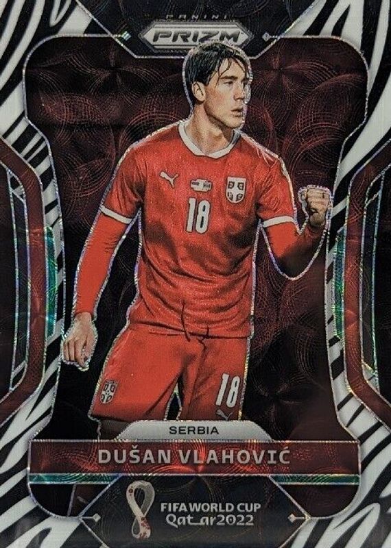 Dusan Vlahovic 2022 Prizm World Cup #255 Choice Zebra /(SSP) RAW Price Guide