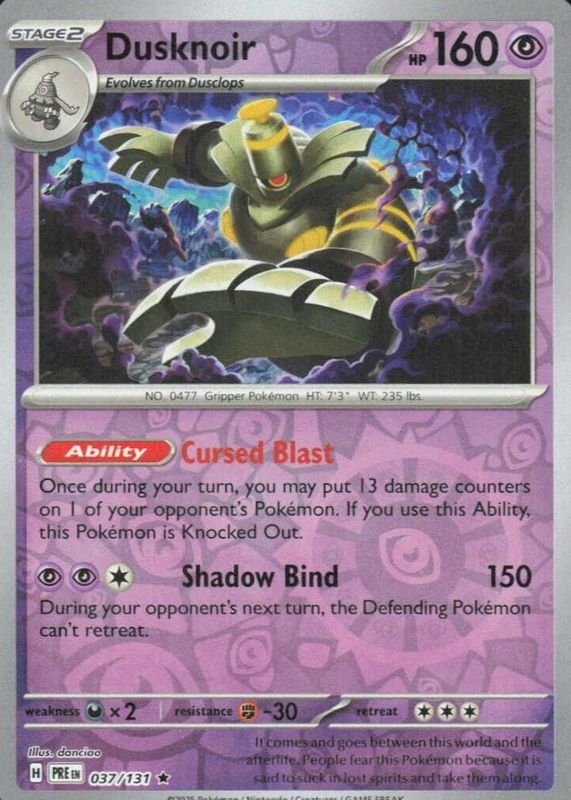 Reverse Holofoil Dusknoir 037/131 Rare SV: Prismatic Evolutions Pokemon Card NM