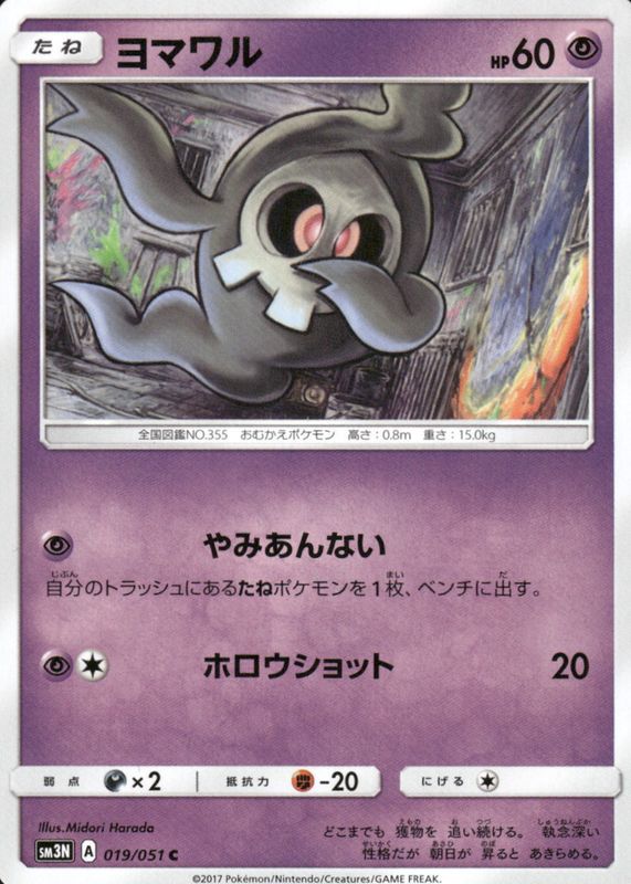 The Duskull 2017 Japanese Sun & Moon: Darkness that Consumes Light #019/051 Base card in Raw TCG (Near Mint) condition has not changed in price in the last 30 days and was last sold for $1.69 .