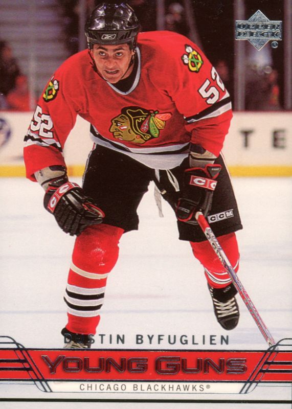 The Dustin Byfuglien 2006 Upper Deck #206 Young Guns Base Rookie card in Raw condition has moved up $0.90 (+5.0%) in the last 30 days and was last sold for $18.64 .