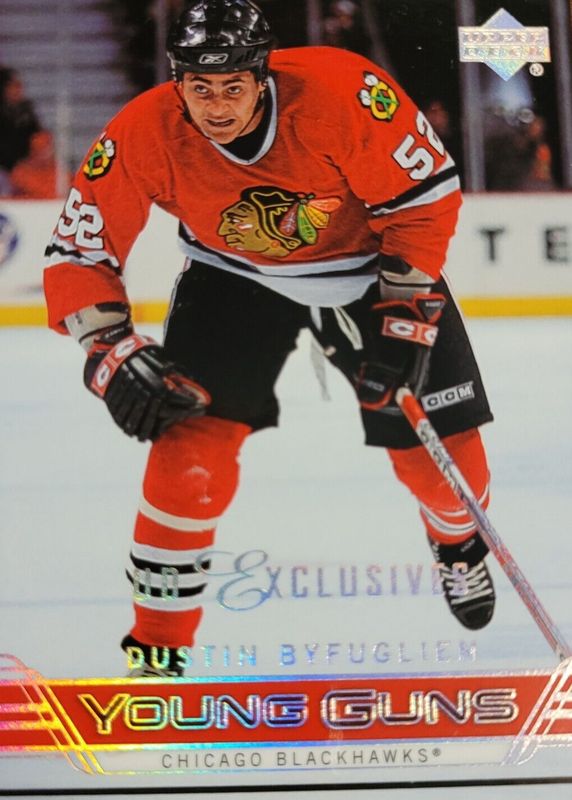 This card is 1 of 3 Dustin Byfuglien's card variations in the 2006 Upper Deck set being tracked by Sports Card Investor, including Young Guns Base, and Young Guns - UD High Gloss /10.