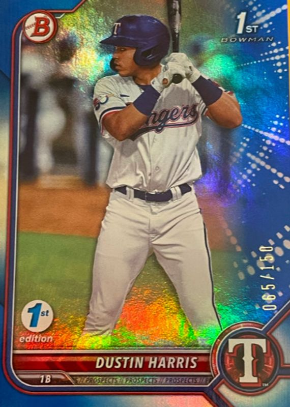 DUSTIN HARRIS 2022 Bowman First 1st Edition BLUE FOIL Rangers 33/150 🔥 Prospect