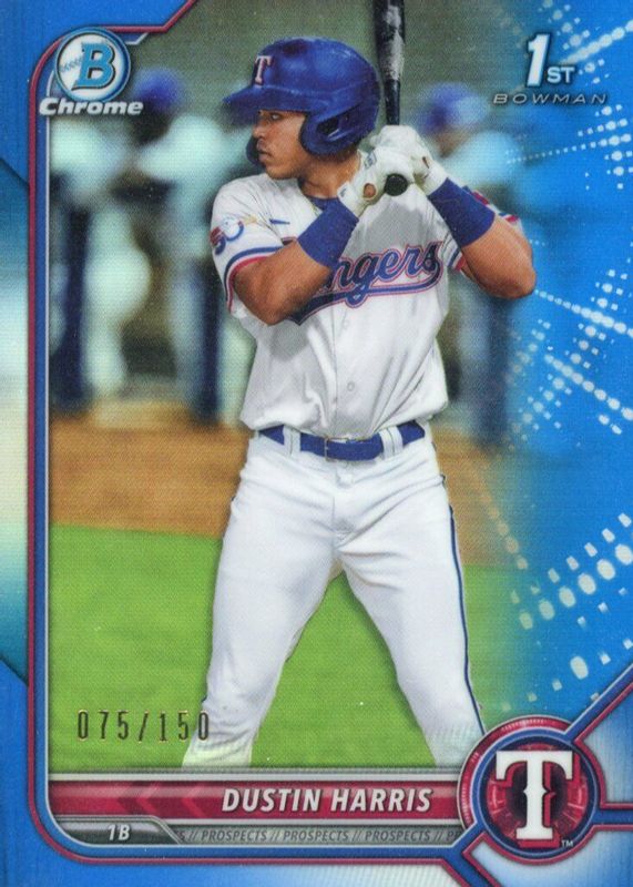 2022 1st Bowman Chrome Dustin Harris Blue Refractor #'d /150 #BCP-119 - Rangers