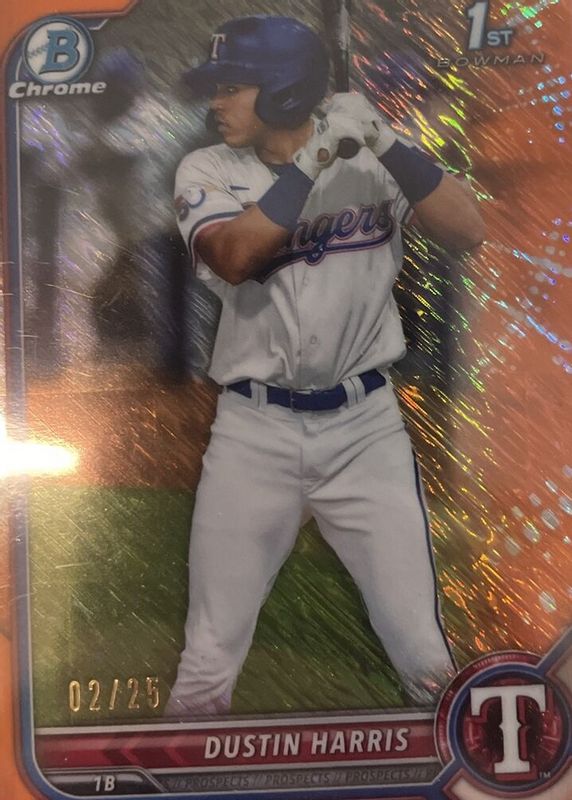 Auctions Ending Soon for Dustin Harris 2022 Bowman #BCP-119 Chrome Prospects - Orange Shimmer Refractor /25 (1st) RAW