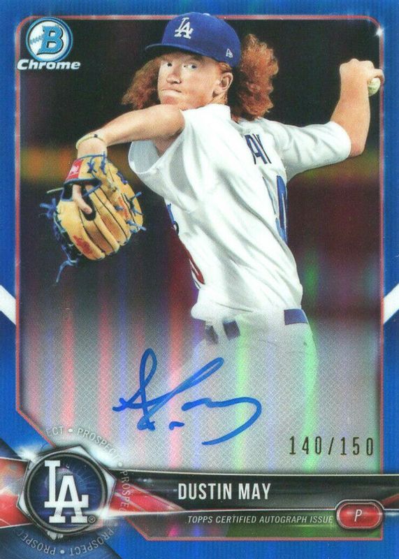 2018 Bowman Chrome Dustin May Auto Blue Refractor /150 Dodgers Autograph