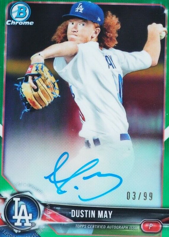 Dustin May 2018 Bowman Chrome #BCPA-DM Prospect Auto - Green Refractor /99 RAW Price Guide