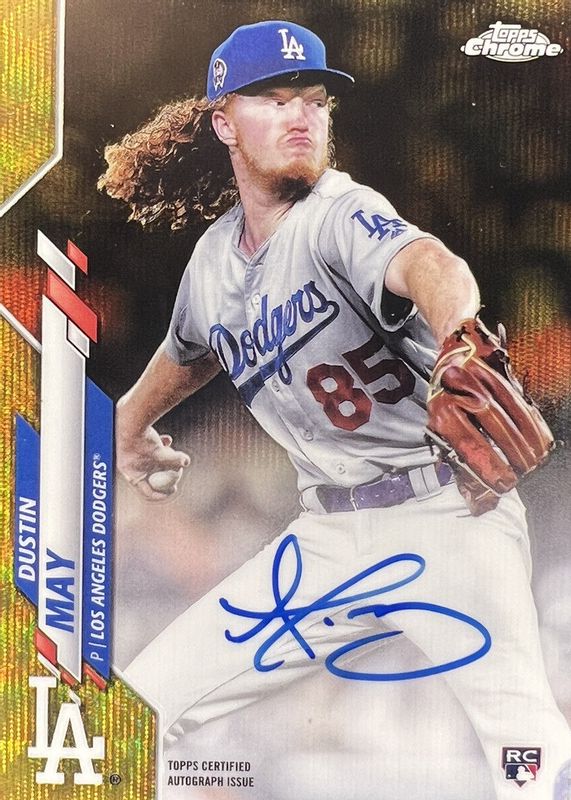2020 Topps Chrome Dustin May Gold Wave Refractor Rookie RC Auto /50 Dodgers MLB