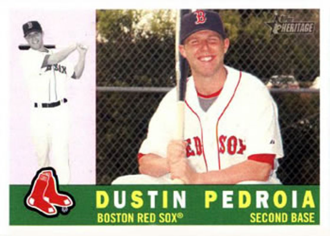 The Dustin Pedroia 2009 Topps Heritage #15a Base card is 1 of 10 Dustin Pedroia's card variations in the 2009 Topps Heritage set being tracked by Sports Card Investor, including #15b Base, #483 Base, #15 Base, #C75 Chrome /1960, and #C75 Chrome Refractor /560.