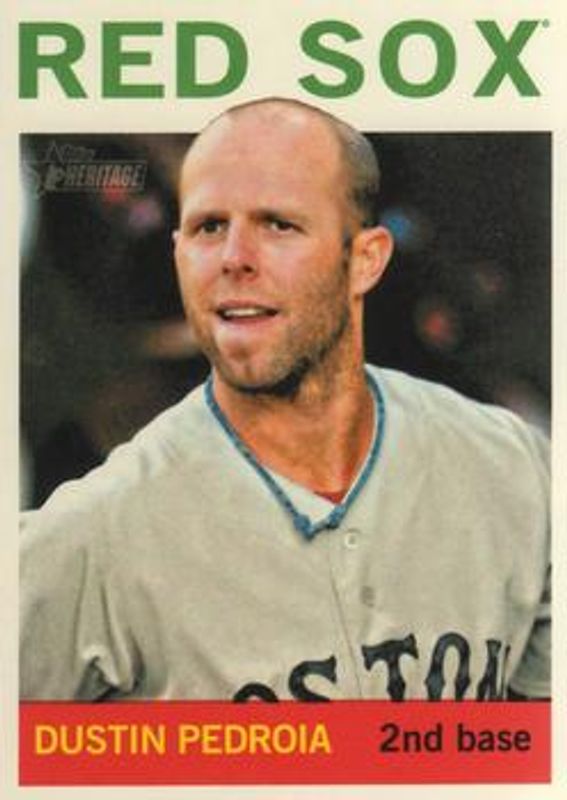 The Dustin Pedroia 2013 Topps Heritage #434 Base card is 1 of 11 Dustin Pedroia's card variations in the 2013 Topps Heritage set being tracked by Sports Card Investor, including Black, Blue Border, Venezuelan, Mini /100, and Chrome - Purple Refractor.