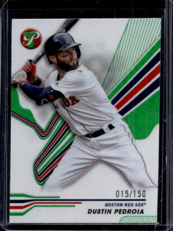 The Dustin Pedroia 2024 Topps Pristine #75 Green Refractor /150 card is 1 of 24 Dustin Pedroia's card variations in the 2024 Topps Pristine set being tracked by Sports Card Investor, including Base, Pristine Refractor, Refractor, Pristine Purple Refractor /99, and Purple Refractor /99.