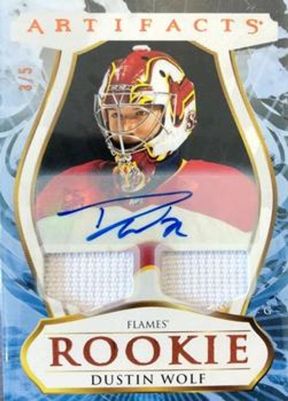 Dustin Wolf 2023 Upper Deck Artifacts #182 Auto Material - Orange /5 Rookie RAW Price Guide
