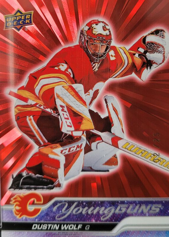 Auctions Ending Soon for Dustin Wolf 2023 Upper Deck #210 Young Guns - Outburst Red /25 Rookie RAW
