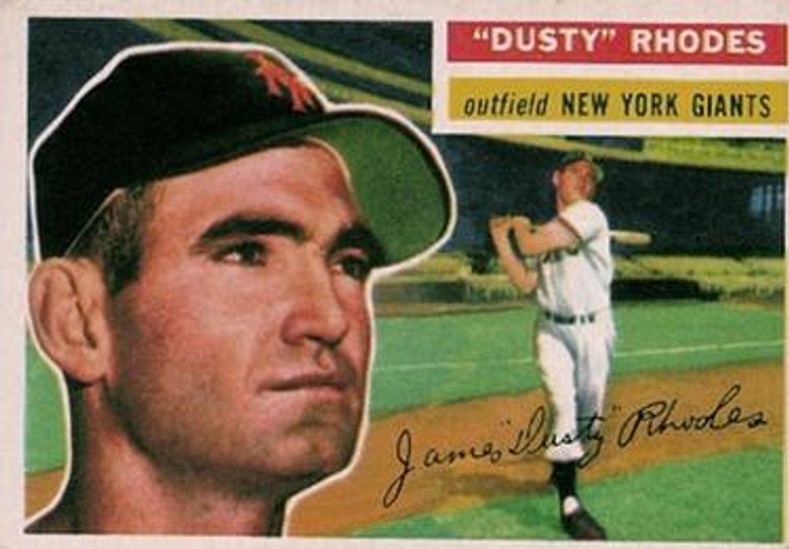 The Dusty Rhodes 1956 Topps #50b Base card is 1 of 2 Dusty Rhodes' card variations in the 1956 Topps set being tracked by Sports Card Investor, including Base.