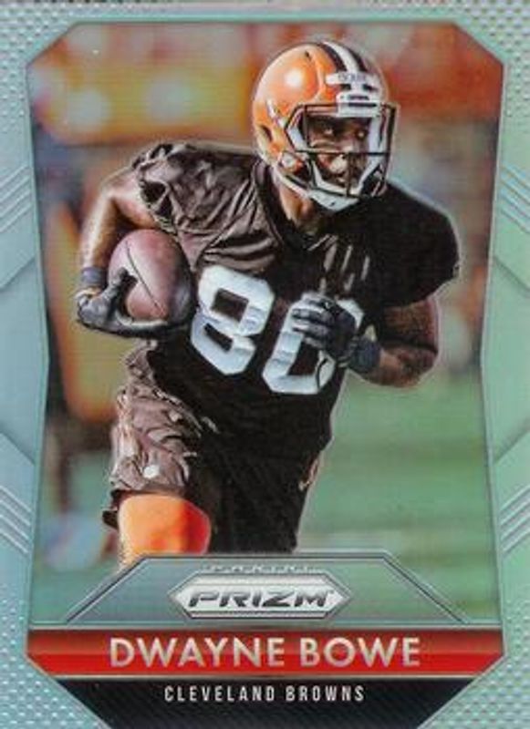 The Dwayne Bowe 2015 Prizm #151 Silver card is 1 of 12 Dwayne Bowe's card variations in the 2015 Prizm set being tracked by Sports Card Investor, including Base, Red, Violet, Blue Wave /150, and Green Crystals /75.
