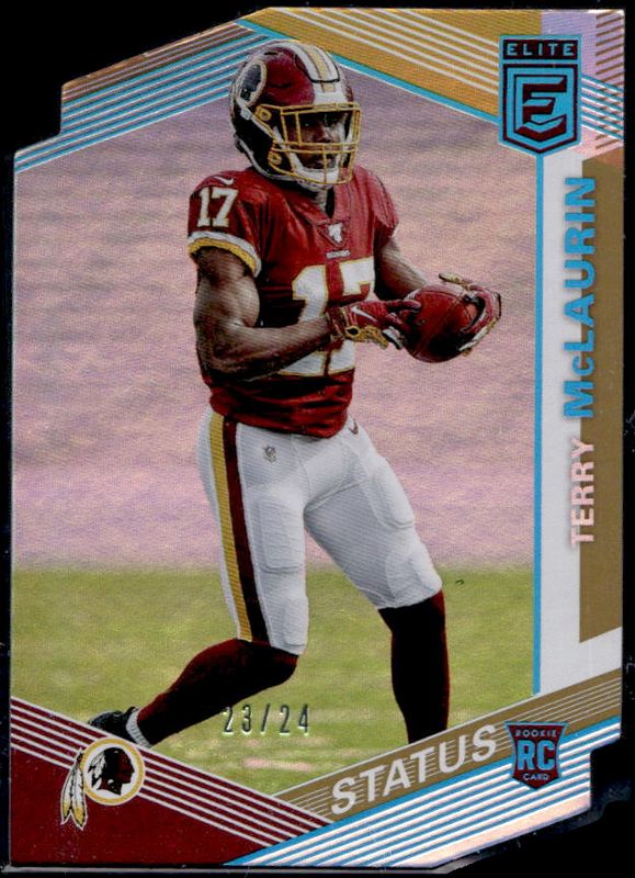 The Dwayne Haskins 2019 Elite #102 Status Die-Cut /24 Rookie card is 1 of 40 Dwayne Haskins' card variations in the 2019 Elite set being tracked by Sports Card Investor, including Green, Pink, Red /299, Purple /99, and Orange /49.