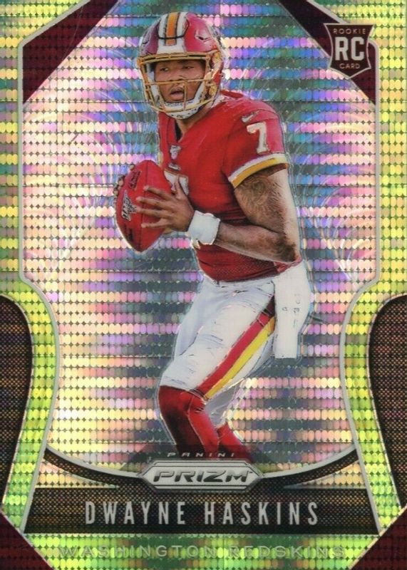 This card is 1 of 41 Dwayne Haskins' card variations in the 2019 Prizm set being tracked by Sports Card Investor, including Base, Disco, Green, Lazer, and Pink.