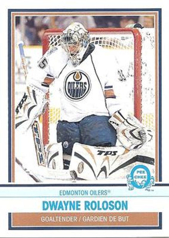 The Dwayne Roloson 2009 O-Pee-Chee #104 Retro card is 1 of 10 Dwayne Roloson's card variations in the 2009 O-Pee-Chee set being tracked by Sports Card Investor, including #619 Base, #104 Base, #619 Rainbow, #104 Rainbow, and #104 Retro Blank Back.